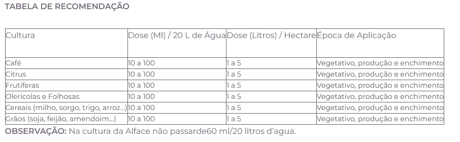 - Fácil aplicação (via barra, pivô, aspersão, gotejamento como complemento nutricional)