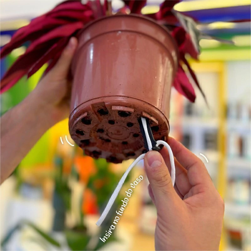 Com apenas um pino e um cordão condutor de umidade, suas plantas recebem a água necessária por vários dias, mantendo o equilíbrio perfeito entre hidratação e oxigenação das raízes.
